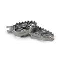 Meticulously cast in the company’s in-house foundry using lightweight Grade 5 titanium, a material with high strength and excellent corrosion resistance, these one-piece footpegs were designed with the demanding engineering objectives of high mechanical strength and extremely stable construction, ensuring stability, grip, and comfort for the rider on- and off-road.
