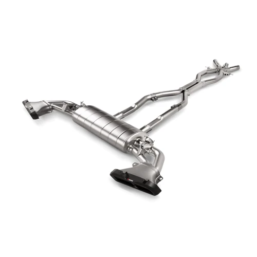 This product is made from high-grade lightweight titanium for a weight saving of 34.2% over the AMG Performance exhaust system. The fully sandblasted exterior is completed with a new tailpipe design constructed from hand-crafted carbon fibre with a titanium inner sleeve.