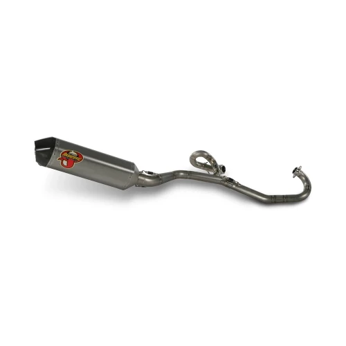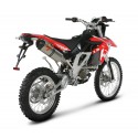 Akrapovic løfter effekten og senker vekten for eksosen til Aprilia's 450/550 modeller! Illustrasjonsbilder avviker noe fra det virkelige produktet da lagerført anlegg har annen lyddemper med bla. metall endelokk. 3.8 HK som mest i økning fra det originale anlegget for 450's del er resultatet. Vektreduksjonen ligger på ca. 2 kilo.