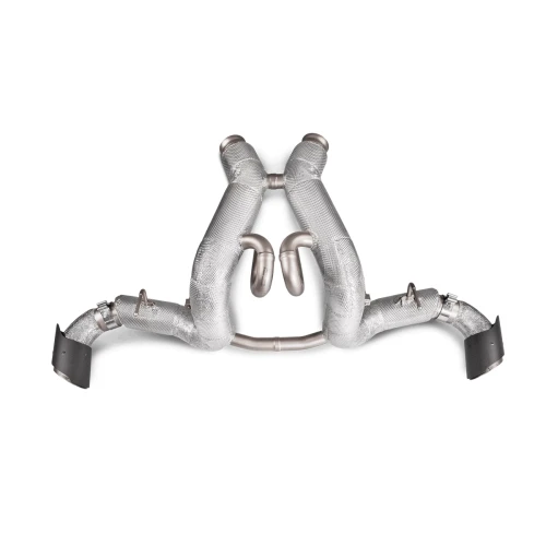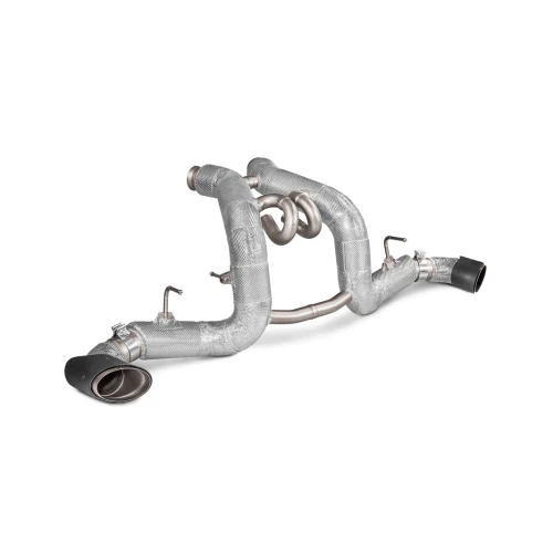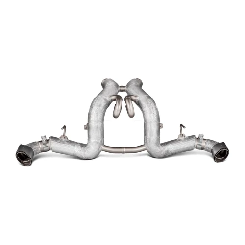 An exquisite car deserves an exquisite exhaust, and the Slip-On Line (Titanium) for the McLaren is certainly that. It is made of special, lightweight, durable, and heat-resistant titanium alloys, all perfectly formed and shaped to fit the car. Bigger tubes deliver optimised gas flow, and the use of ultra-lightweight materials will significantly reduce the vehicle’s weight and enhance its handling. A distinctive coating offers an enhanced appearance, and the parts most exposed to heat feature special insulation for protection. With two flawlessly styled and finished handmade carbon-fibre tailpipes, which beautifully complement the titanium pipes, this exhaust is a work of art. It comes complete with a soundtrack that perfectly matches the car’s performance, ideally tuned to produce a unique sound colour and the celebrated Akrapovič signature sound.THIS PRODUCT DOES NOT MEET EMISSION COMPLIANCE REQUIREMENTS FOR STREET OR HIGHWAY USE.
