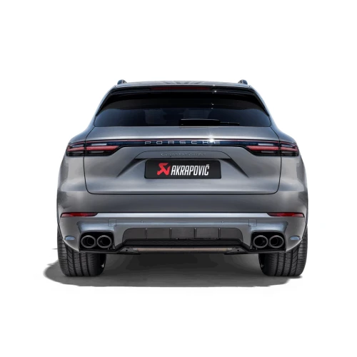 This stunning system is constructed entirely from lightweight high-grade titanium. Its beautiful and sleek design is finished with a central muffler with two pairs of eye-catching double round tailpipes – available in either handmade carbon fibre or sandblasted and coated titanium for increased durability – and it incorporates exhaust-valve housings cast in the Akrapovič in-house foundry. The sound has been tuned to deliver a fulfilling acoustic statement every time the car fires to life. The Evolution Line (Titanium) produces a deep, strong growl from the V8 turbo engine, giving the driver and passengers a true feeling of the immense torque the engine has to offer. This is achieved through a carefully designed X-crossing element in the link pipes that influences the sound. This allows the exhaust gases to mix from both sides of the engine, placing the resulting combination on par with a finely tuned musical instrument and creating incredible high-frequency overtones as the revs rise, all without any compromise to aural clarity and comfort. Fully ECE-compliant and with a simple plug-and-play installation, with no need to remap the ECU, the Evolution Line (Titanium) also adds increased performance to the stunning visual appeal. Test gains achieved by the Akrapovič technicians in controlled conditions show both power and torque gains over the Porsche sport exhaust system of +8.2 kW at 5,600 rpm and +16.6 Nm at 2,400 rpm, respectively, making the system an impressive addition to the Porsche Cayenne Turbo (536).The sound can be further controlled with the addition of the optional Akrapovič Sound Kit, which offers increased operational features over the exhaust system. When fitted with the optional Akrapovič Sound Kit, ECE type approval is no longer valid.ECE type approval is only valid for cars equipped with otto/gasoline particulate filter.
