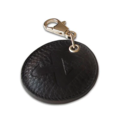 Black leather round keychain is fashionable accessory for your set of keys.Dimensions: D 60 mm.