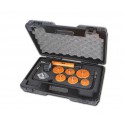 Parts description • 1 bayonet connector cap, Ø 56 mm • 1 threaded cap, Ø 39 mm • 1 coarse threaded cap, Ø 43 mm • 1 fine threaded cap, Ø 43 mm • 1 threaded cap, Ø 49 mm • 1 threaded cap, Ø 59 mm • 1 threaded cap, Ø 69 mm 440x330x100 mm - 3 kg