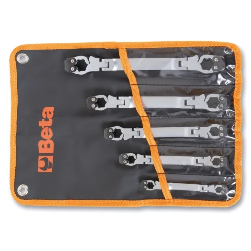 Set of 5 swivelling, openable wrenches in wallet. Ideal for pipe fittings 8x9-10x11-12x13 14x15-16x17 mm