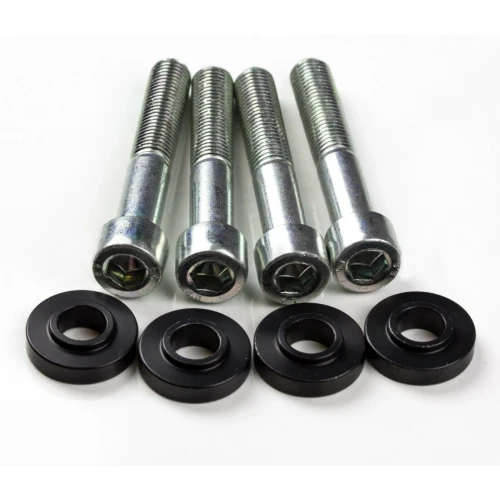 Dette er et spacer kit som inneholder 4 skruer og 4 spacere som gjør at det er mulig å montere M4/XA5G kalipperen (se bildet) rett inn på en standard Honda CBR gaffel i kombinasjon med ø320 mm (over size) skiver.