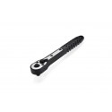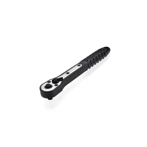 Sperremekanisme med 45 tenner, krever kun 8° bevegelse. Støtmotstandig, olje- og kuldemotstandig håndtak med integrert stålforsterkning i skaftet. Hurtigutløserknapp. Reversibel.