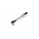 Kompakt skrallehode med hurtigutløserknapp. Ekstra solid skrallemekanisme med 72-tenner, krever kun 5 º bevegelse. Lys krom vanadium i hoveddel, med gummi for bedre grep.