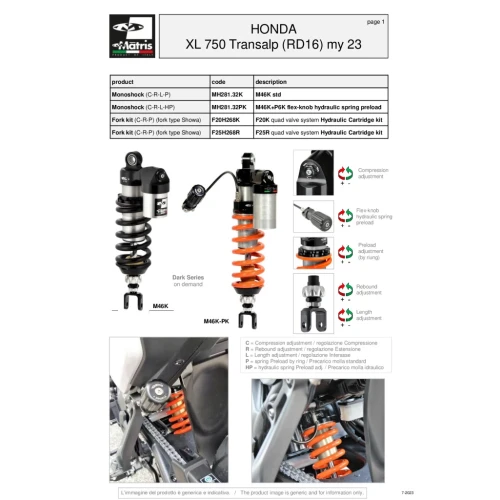 Monodemper (bak) i ALU kropp med alle justeringsmuligheter. Leveres med tilpasset fjærkonstant (hardhet). Kan leveres med oransje eller svart fjær. Illustrasjonsbilde viser separat K46 monodemper
