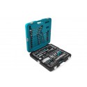 En komplett tungvekter med i alt 139 verktøy som dekker de fleste behov. Dette mekanikersettet inneholder 3 pipenøkkelsett (1/4", 3/8" og 1/2"), med et stort utvalg piper, kombinasjonsnøkler, leddnøkler, forlengere, ledd og bitsverktøy. Inneholder også tre ekstra fintannede skraller med 2-komponentsgrep. Mål: 480 x 480 x 110 mm.