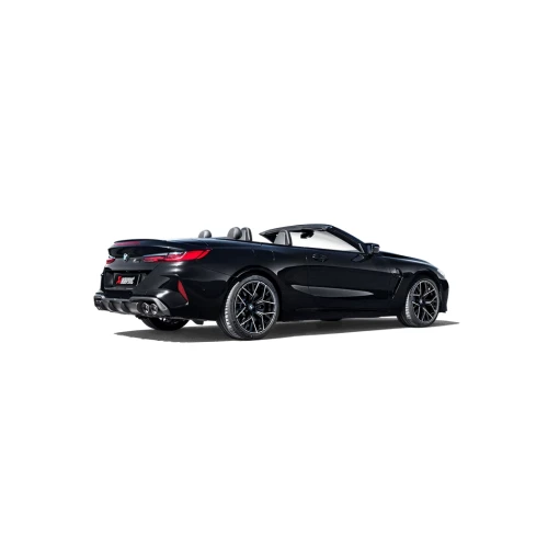 The stunning carbon-fibre diffuser is offered as an option with the choice of a high-gloss or matt finish. It is a completely new design from the one that comes as standard on the car, and it gives the rear of the M8 a more aggressive and sporty feel. It shows off the tailpipes to their full extent and is a perfect accompaniment to the side mirror caps.Fitment notice: With Akrapovič diffuser, hands-free trunk-lid opening/closing sensor is not working.