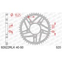 Many today’s production bikes, deliver over 200 HP. This is more or less the point where an aluminium sprocket is on the limit of his mechanical characteristics. Premature wear results in power loss and as a result the material fatigue can cause cracks. In Racing configuration, the lifetime of a steel sprocket will be clearly superior to an aluminum sprocket as the stresses are less important. It is obvious that a steel sprocket will be slightly heavier than an aluminum sprocket, since the density of steel is 2.8 times higher. The design makes this steel sprocket as light as possible. Example: 36808-43 Alu: 0,246 Kg, 35808RLK-43 Steel superlight: 0,593 Kg