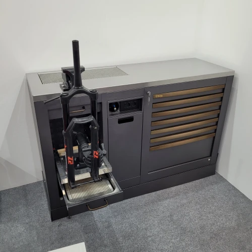 Italiensk utviklet og produsert verkstedmodul for service av demperkomponenter.