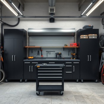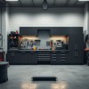 Kamasa Tools | Verkstedinnredning med rullegardinskap, benkeplate i eik