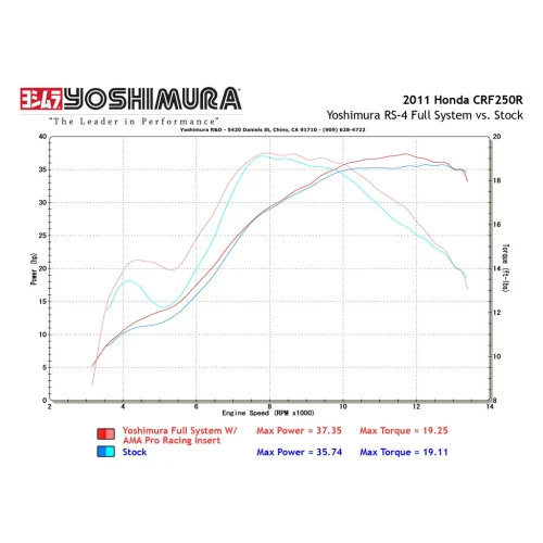 Yoshimura komplett anlegg med den kompakte RS-4 lyddemperen som sentraliserer masse/vekt og dermed bidrar til forbedring av kjøreegenskaper. Gedigen effektøkning som effektgrafen også viser. Anlegget leveres fra esken med 94db-AMA innsats,