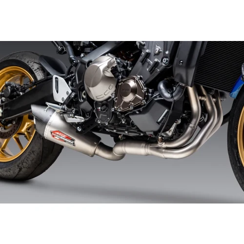 Our R&D team immediately went to work on the development for the new Yamaha and called on our AT2 profile to handle the power and torque of the 890cc three cylinder - torque monster engine. The AT2 is perfect styling for the MT-09 and incorporates our exclusive Works Finish an aggressively styled matte finish carbon fiber end cap complimented by a facet-formed tip while adding an aggressive GP tone.